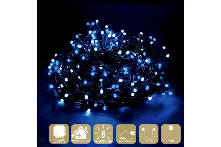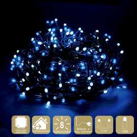 GUIRNALDA A LA RED ELÉCTRICA. USO INTERIOR / EXTERIOR. IP44. TRANSFORMADOR DE 31 V. CABLE VERDE. LONGITUD TOTAL 995 CM. CADENA DE 495 CM Y EXTENSIÓN DE 500 CM. DISTANCIA ENTRE LUCES DE 5 CM.
