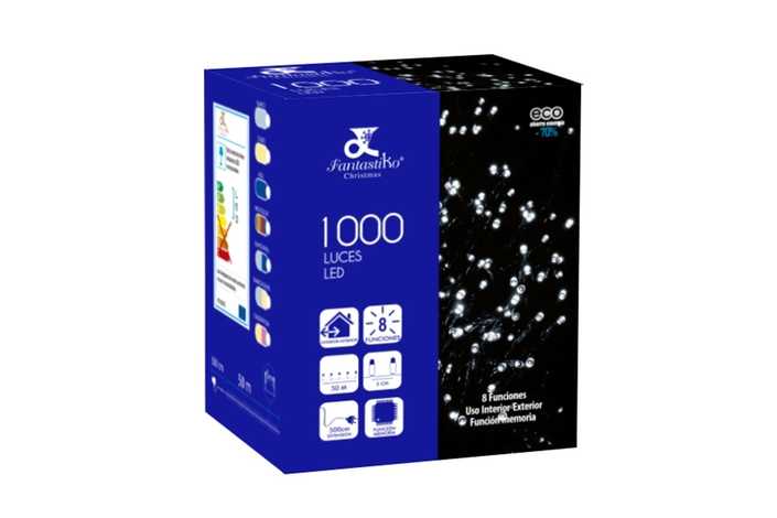 GUIRNALDA A LA RED ELÉCTRICA. USO INTERIOR / EXTERIOR. IP44. CABLE VERDE. LONGITUD CADENA 50 METROS + 500 CM DE EXTENSIÓN. DISTANCIA ENTRE BOMBILLAS: 5CM. CAJA LITOGRAFIADA DE 25 X 20 X 18 CM.
