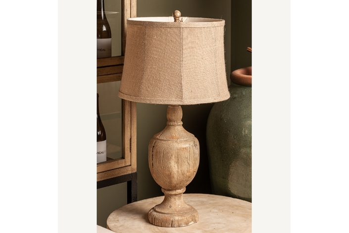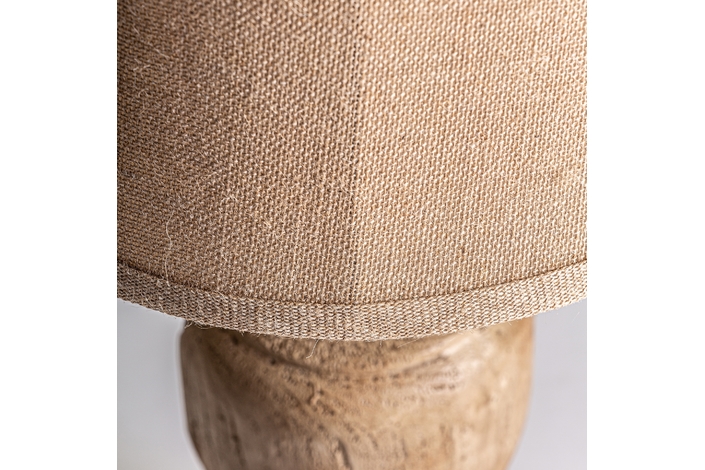 Lámpara de sobremesa, en color marrón envejecido, de estilo provenzal. Fabricado en resina, combinado con yute. Producto desmontable.