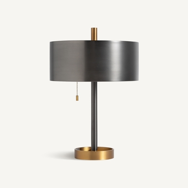 Lámpara de sobremesa, en color gris/oro, de estilo art deco. Fabricado en bronce. Producto desmontable.