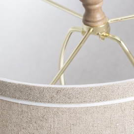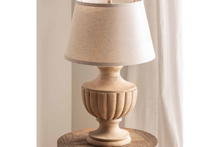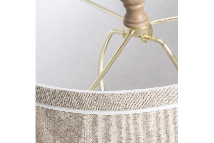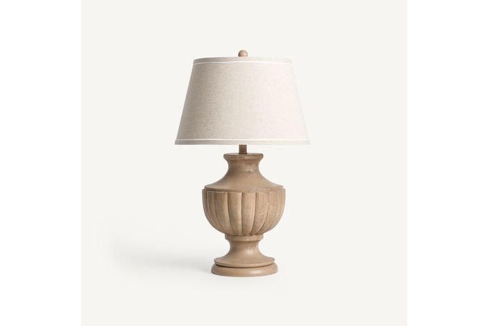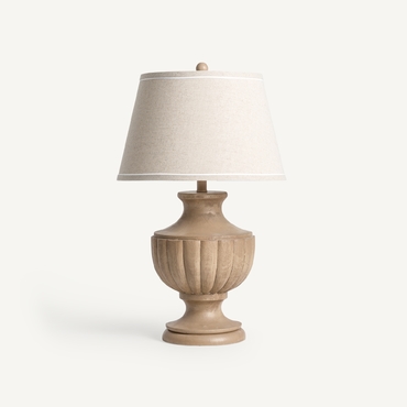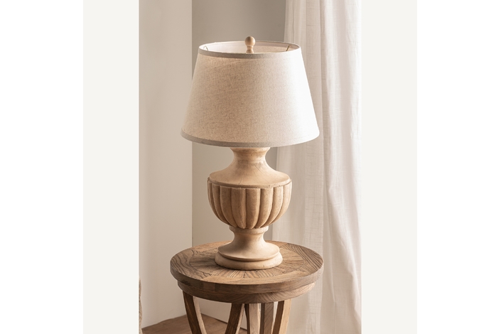Lámpara de sobremesa, en color marrón, de estilo provenzal. Fabricado en resina, combinado con poliéster y lino. Producto desmontable.
