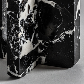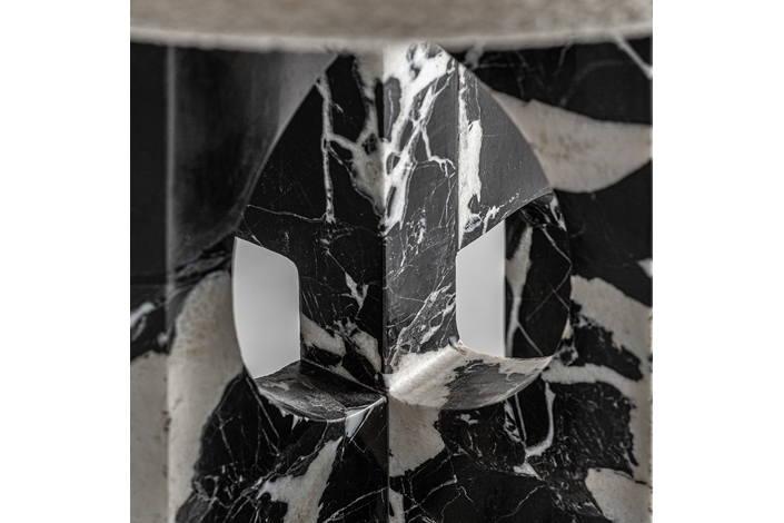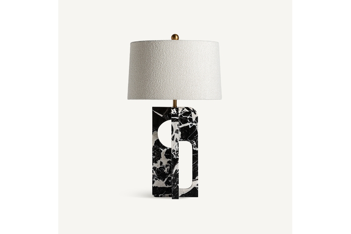 Lámpara de sobremesa, en color negro/blanco, de estilo art deco. Fabricado en mármol, combinado con algodón y bronce. Producto desmontable.