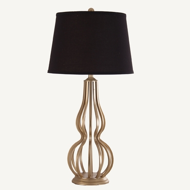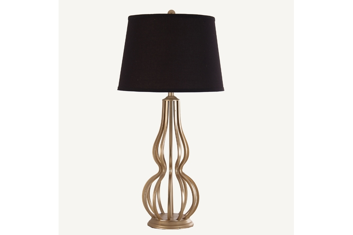 Lámpara de Sobremesa, en color Dorado, de Estilo Art Deco.Fabricado en Hierro, Combinado Con Lino.Producto Desmontable.