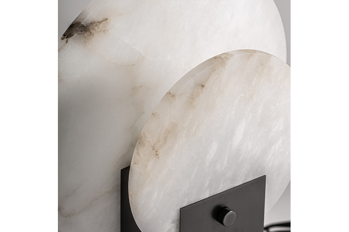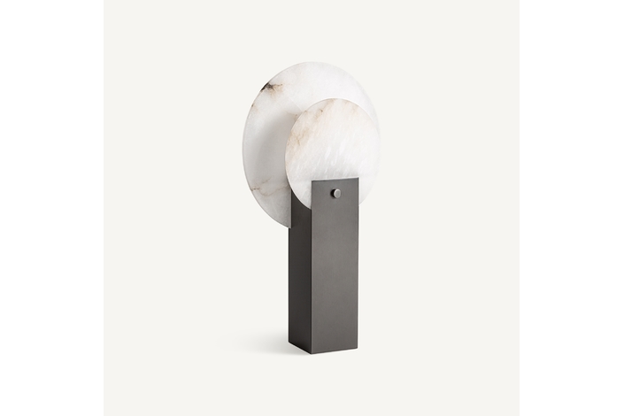 Lámpara de sobremesa, en color negra, de estilo art deco. Fabricado en hierro, combinado con piedra.