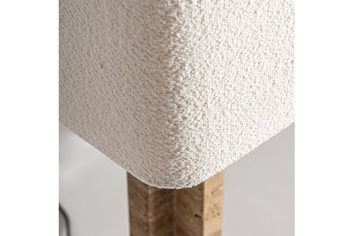 Lámpara de Sobremesa, en color Beige, de Estilo Art Deco.Fabricado en Hierro, Combinado Con Travertino Y Algodón Bouclé.Producto Desmontable.