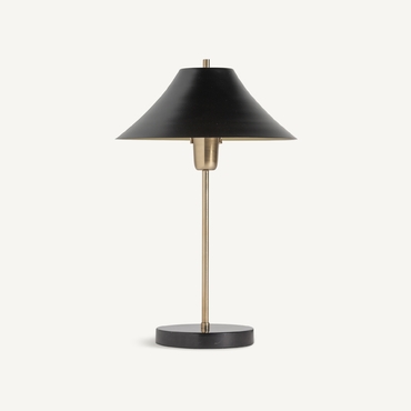 Lámpara de sobremesa, en color oro/negro, de estilo art deco. Fabricado en hierro, combinado con mármol. Producto desmontable.