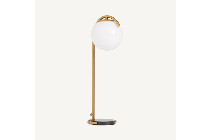 Lámpara de sobremesa, en color negro/oro, de estilo art deco. Fabricado en hierro, combinado con cristal y mármol.