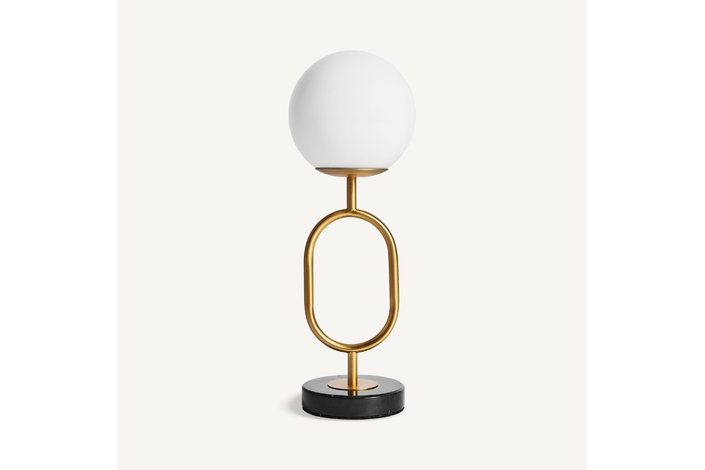 Lámpara de sobremesa, en color negro/oro, de estilo art deco. Fabricado en hierro, combinado con cristal y mármol. Producto desmontable.