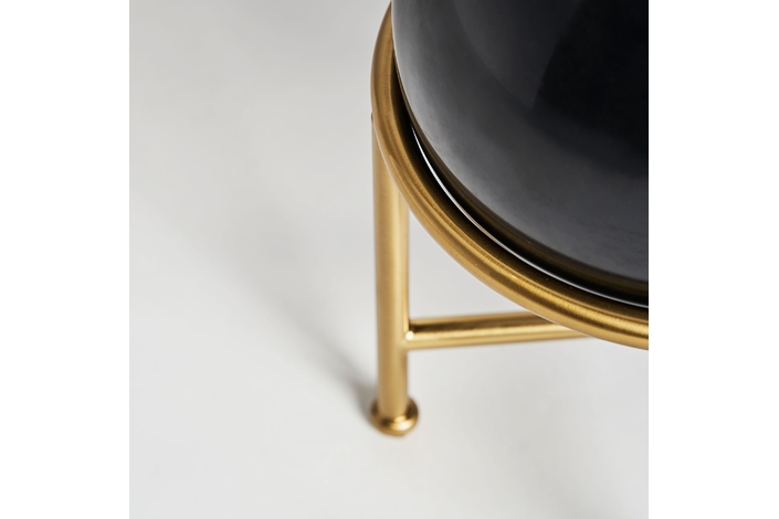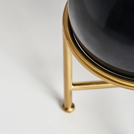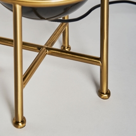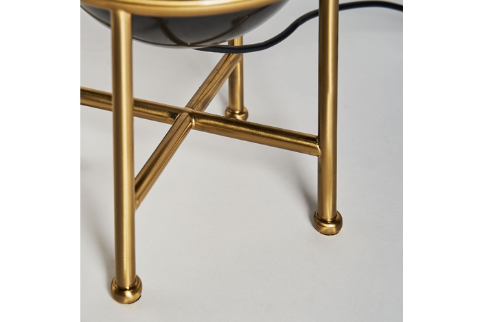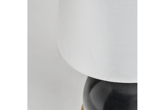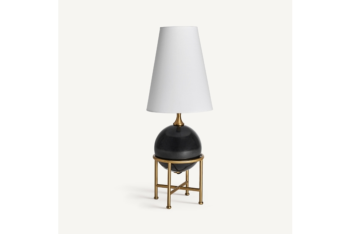 Lámpara de sobremesa, en color negro/oro, de estilo art deco. Fabricado en hierro, combinado con mármol y tela.