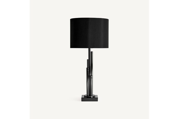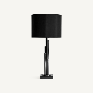 Lámpara de sobremesa, en color negra, de estilo art deco. Fabricado en acero, combinado con poliéster.