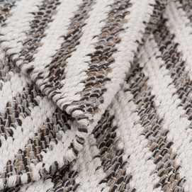 Alfombra tejida a mano. Materiales: 70% algodón - 30% poliéster. Aspirar la alfombra regularmente en potencia baja, sin cepillo fijo o giratorio. Limpiar los derrames de líquido inmediatamente. Para limpiar cualquier mancha, use un paño húmedo sólamente con agua. No use detergente u otro producto de limpieza. No exponer la alfombra directamente al sol o a la humedad. Gire la alfombra de vez en cuando para favorecer un desgaste uniforme. Para almacenar la alfombra, siempre enróllela con la cara hacia fuera, quedando así la superficie de la alfombra encarada al exterior. No enrolle la alfombra con la cara hacia dentro, ni la doble,ya que puede dañarla.