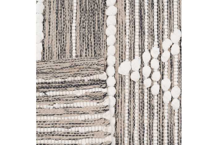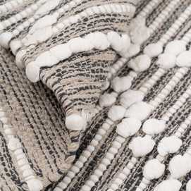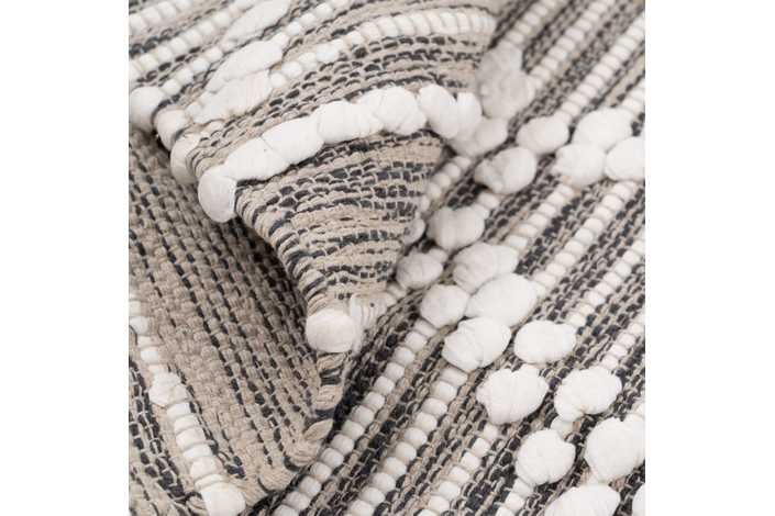 Alfombra tejida a mano. Materiales: 60% algodón - 40% poliéster. Aspirar la alfombra regularmente en potencia baja, sin cepillo fijo o giratorio. Limpiar los derrames de líquido inmediatamente. Para limpiar cualquier mancha, use un paño húmedo sólamente con agua. No use detergente u otro producto de limpieza. No exponer la alfombra directamente al sol o a la humedad. Gire la alfombra de vez en cuando para favorecer un desgaste uniforme. Para almacenar la alfombra, siempre enróllela con la cara hacia fuera, quedando así la superficie de la alfombra encarada al exterior. No enrolle la alfombra con la cara hacia dentro, ni la doble,ya que puede dañarla.