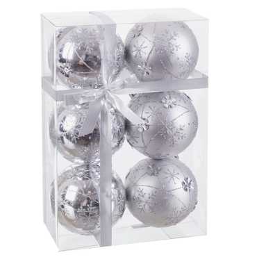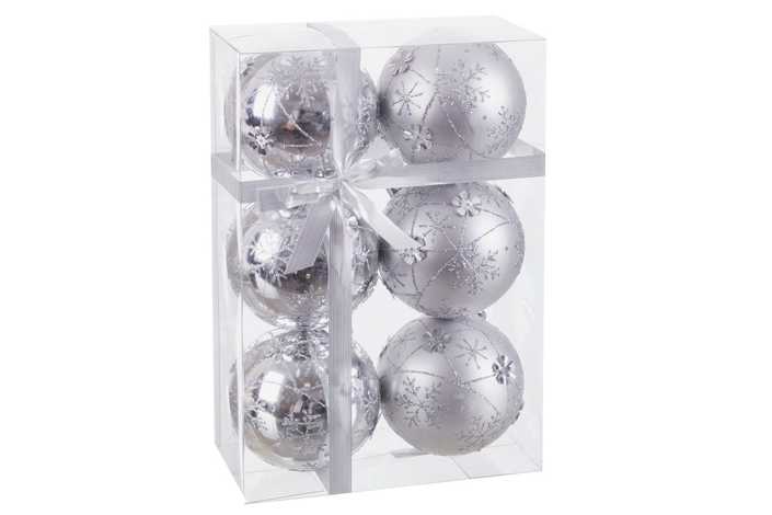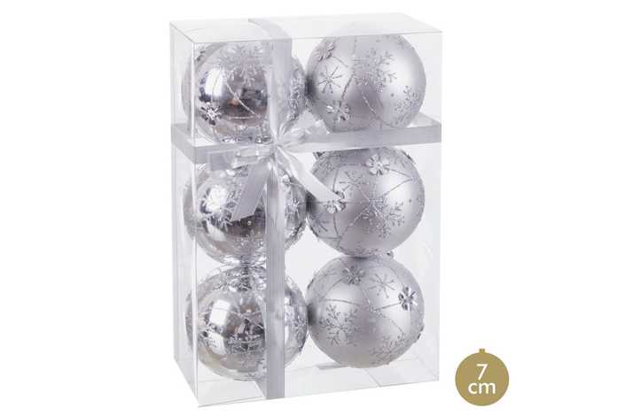 S/6 BOLA DECORADA PLATA 7 X 7 X 7 CM