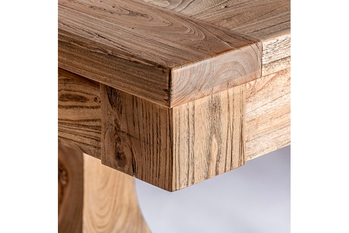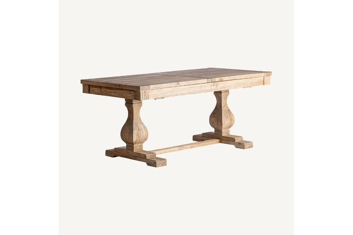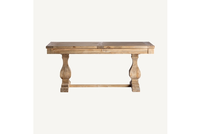 Mesa extensible rectangular berca, en color marrón, de estilo clásico. Fabricado en madera de olmo reciclado. Madera proveniente de antiguas puertaspor lo que puede haber imperfecciones. . Producto desmontable, extensible.