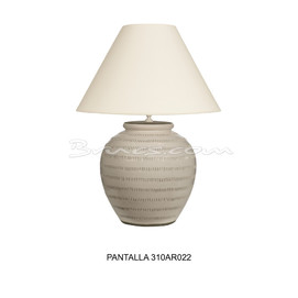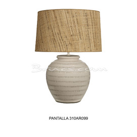 No incluye pantalla / It does not include the shade/ Il n’inclut pas l’abat-jour. LONETA 310AR085, LINO OSCURO 310AR142, RAFIA-2 310AR124, RAFIA-3 310AR099, CHINA 310AR022 Encuéntrela en la sección de iluminación/ Find it in the illumination sectioMedidas: 41Øx 50h cm