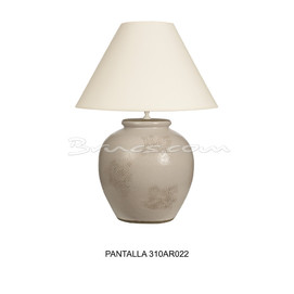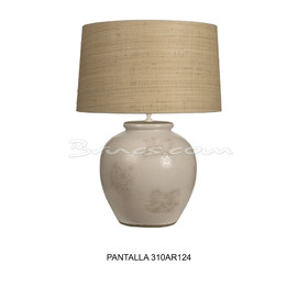 No incluye pantalla / It does not include the shade/ Il n’inclut pas l’abat-jour. LONETA 310AR085, LINO OSCURO 310AR142, RAFIA-2 310AR124, RAFIA-3 310AR099, CHINA 310AR022 Encuéntrela en la sección de iluminación/ Find it in the illumination sectMedidas: 41 Øx50h cm