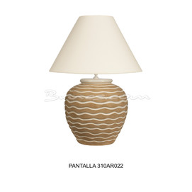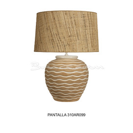 No incluye pantalla / It does not include the shade/ Il n’inclut pas l’abat-jour. LONETA 310AR085, LINO OSCURO 310AR142, RAFIA-2 310AR124, RAFIA-3 310AR099, CHINA 310AR022 Encuéntrela en la sección de iluminación/ Find it in the illumination sectMedidas: 40 Øx50h cm