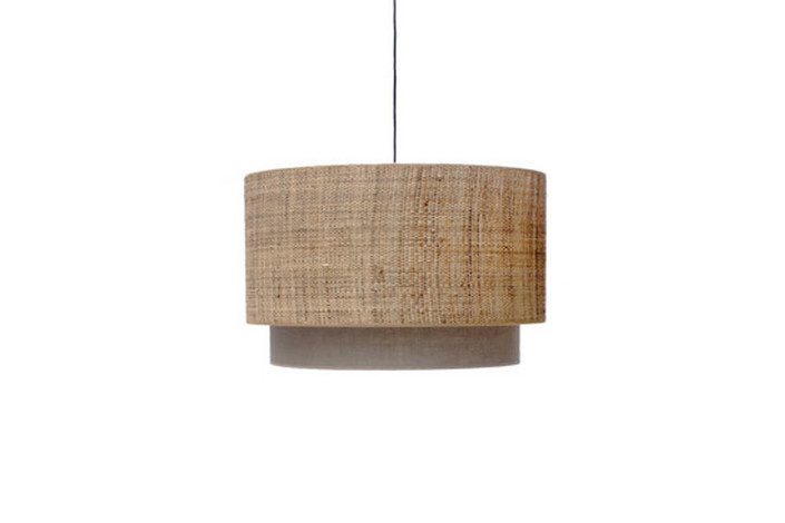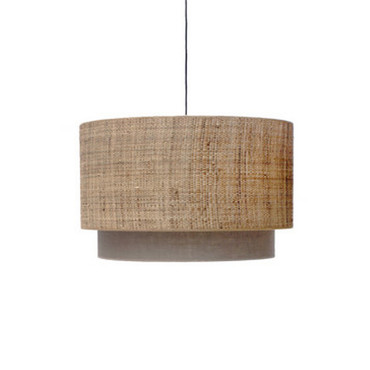 Portalámparas triple / triple douille de lampe/ 3 lamp socket . Pantalla exterior RAFIA 3 , pantalla interior LINO OSCURO. / Abat-jour intérieur RAFIA 3, Abat-jour extérieur LINNEN / Exterior shade RAFIA 3 , interior shade DARK LINEN. Largo delMedidas: 65 Øx32h cm / 55 Øx40h cm