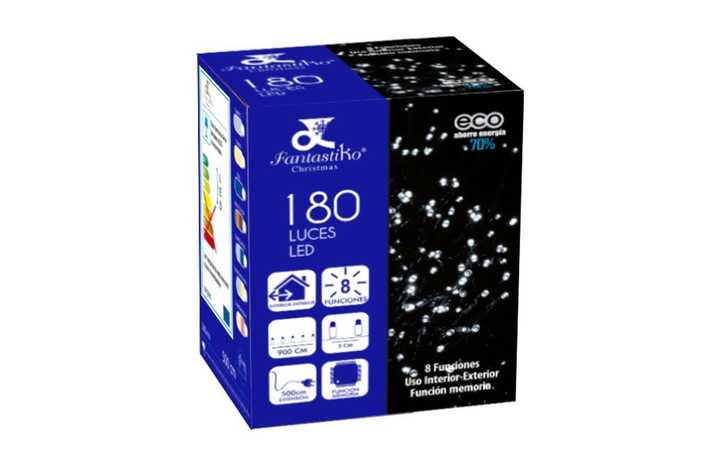 GUIRNALDA A LA RED ELÉCTRICA 3,6 W. USO INTERIOR / EXTERIOR. IP44. CABLE VERDE. LONGITUD CADENA 900 CM + 500 CM DE EXTENSIÓN. DISTAN CIA ENTRE BOMBILLAS: 5CM. CAJA LITOGRAFIADA DE 14 X 10 X 12 CM.