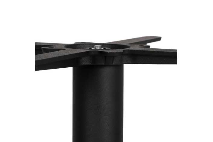 Material: hierro fundido. Soporte tablero: 45x45cm. Diámetro tubo: 7,6cm. Diámetro base: 43cm. Apto para tableros cuadrados hasta 80x80cm y tableros redondos hasta diámetro 90cm.