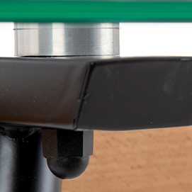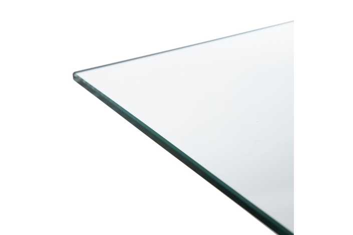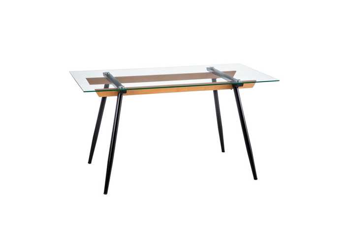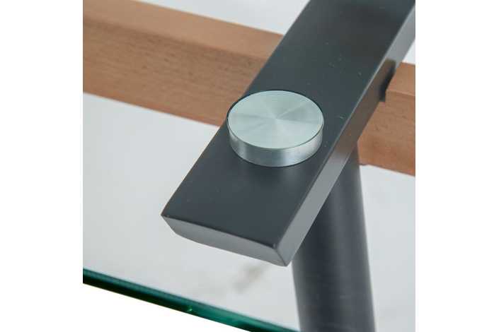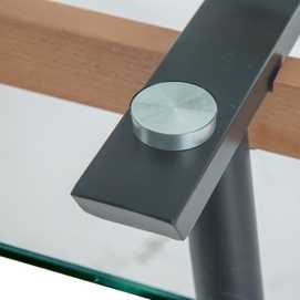 Material: Cristal templado (8mm), metal, madera de haya. Distancia entre las patas: 82cm (medida superior), 111cm (medida inferior).
