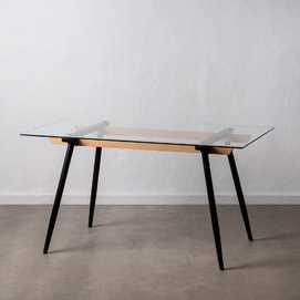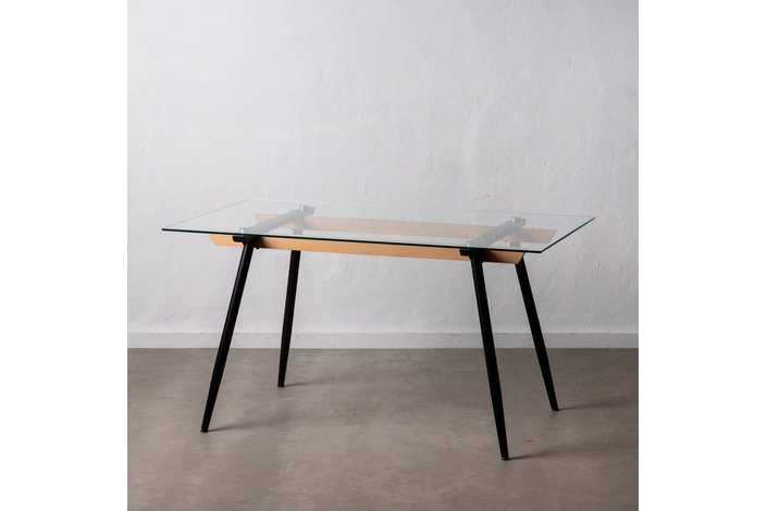 MESA COMEDOR NEGRO METAL-CRISTAL SALÓN 140 X 80 X 75 CM