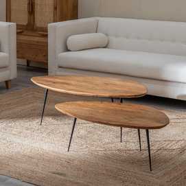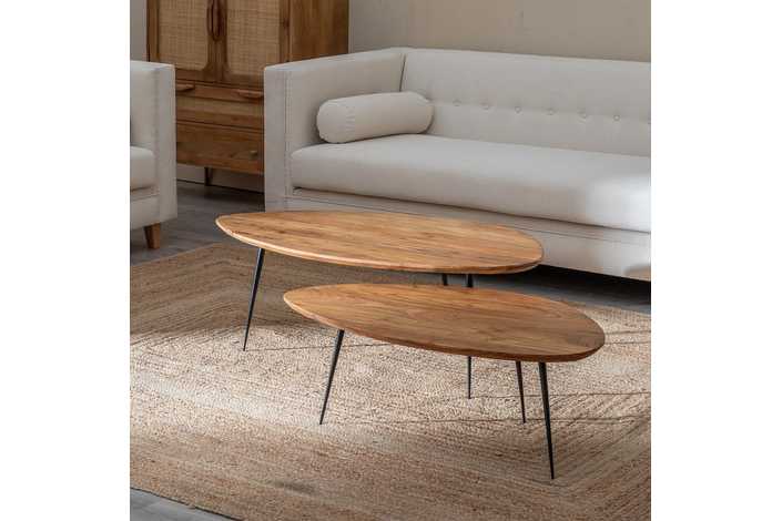 S/2 MESA CENTRO NATURAL MADERA-METAL 110 X 63 X 40 CM