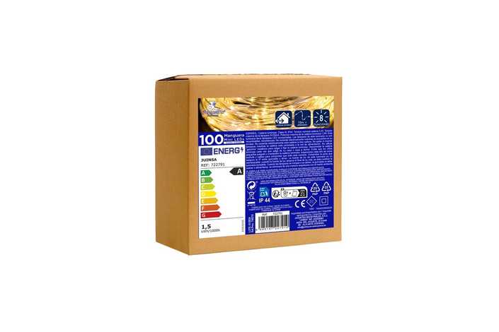 FUNCIONA CON LA RED ELÉCTRICA 20mA 1.5W. TRANSFORMADOR CON 8 FUNCIONES. IP44 (USO INTERIOR / EXTERIOR) CABLE TRANSPARARENTE DISTANCIA ENTRE BOMBILLAS: 10 CM. 100 LEDS DE LUZ CÁLIDA EXTENSIÓN DE CABLE: 3 METROS. ESTE PRODUCTO TIENE TEMPORIZADOR AUTOMÁTICO: 6 HORAS DE FUNCIONAMIENTO / 18 HORAS APAGADO. PRESENTACIÓN EN CAJA MARRÓN.
