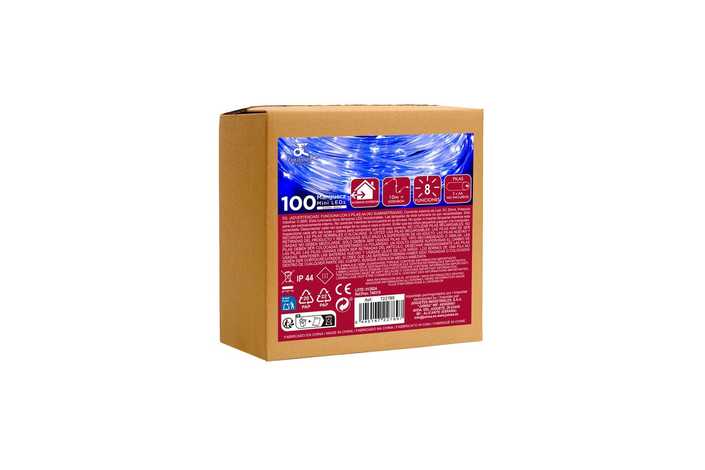 FUNCIONA A PILAS: 3 X AA (NO INCLUIDAS). CON 8 FUNCIONES. IP44 (USO INTERIOR / EXTERIOR) CABLE TRANSPARARENTE DISTANCIA ENTRE BOMBILLAS: 10 CM. 100 LEDS DE LUZ AZUL EXTENSIÓN DE CABLE: 30 CM. ESTE PRODUCTO NO TIENE LA FUNCIÓN DE TEMPORIZADOR. PRESENTACIÓN EN CAJA MARRÓN.