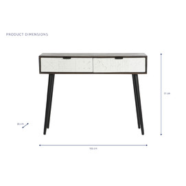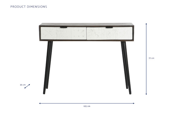 Dimensiones (cm) Longitud 105  |  Fondo 35  |  Altura 77 Peso neto producto (kg) 18,85 Material Mango  |  Metal