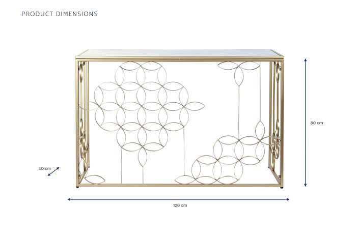 Dimensiones (cm) Longitud 120  |  Fondo 40  |  Altura 80 Peso neto producto (kg) 13,60 Material Metal  |  Espejo
