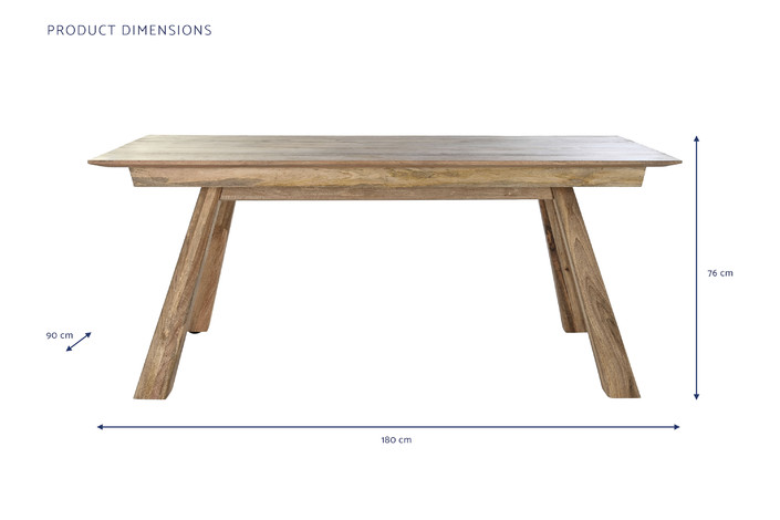 Dimensiones (cm) Longitud 180  |  Fondo 90  |  Altura 76 Peso neto producto (kg) 43,70 Material Mango