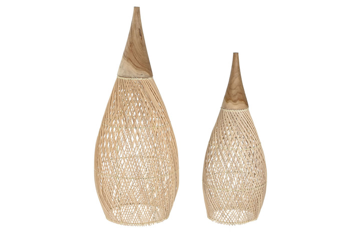 PANTALLA SET 2 BAMBU TECA 35X35X85 HECHO A MANO