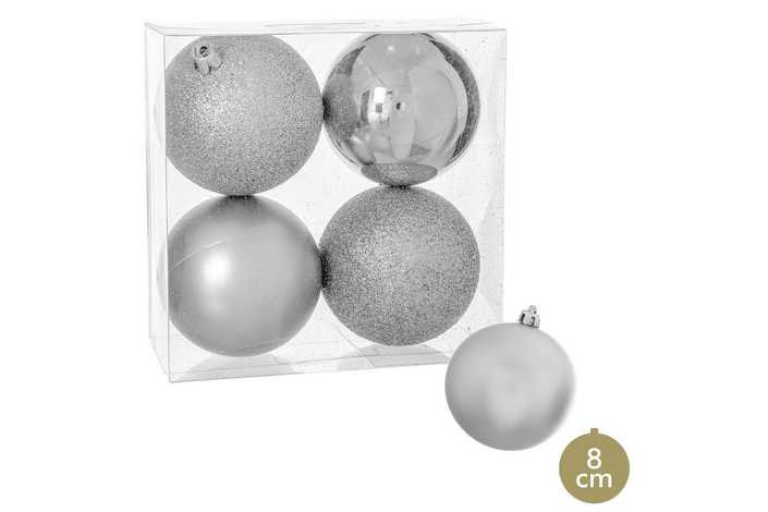 S/4 BOLAS BRILLO-MATE-PURPURINA 8 X 8 X 8 CM