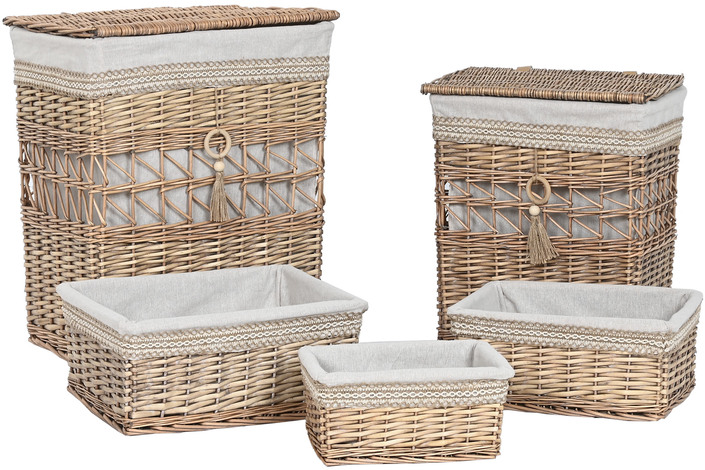 CESTA ROPA SET 5 MIMBRE TELA 47X35X55 NATURAL