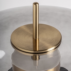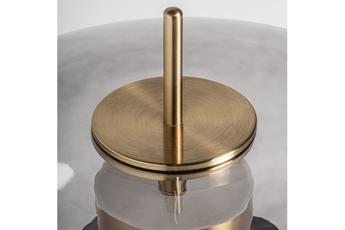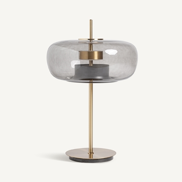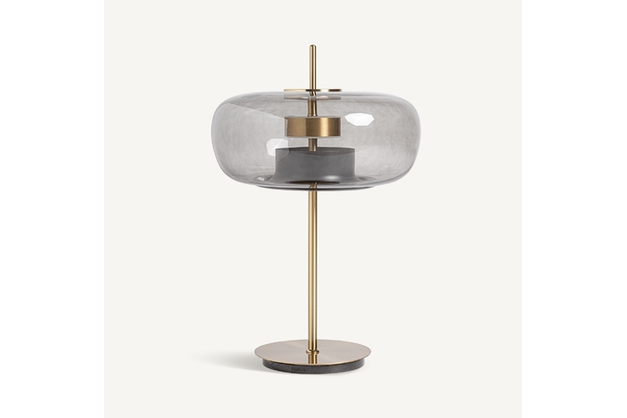 Lámpara de sobremesa. Fabricado en cristal, en color negro/oro, combinado con acrílico, en color oro. Producto desmontable.