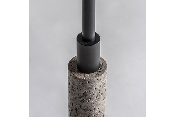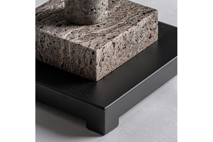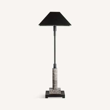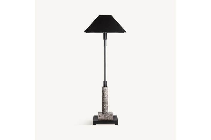 Lámpara de sobremesa. Fabricado en mármol, en color gris, combinado con hierro, en color negro.
