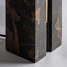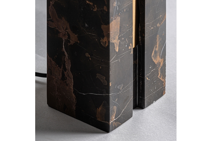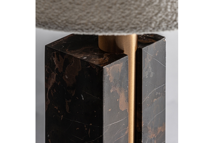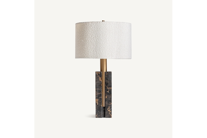 Lámpara de sobremesa. Fabricado en mármol, en color blanco, combinado con hierro, en color marrón. Producto desmontable.