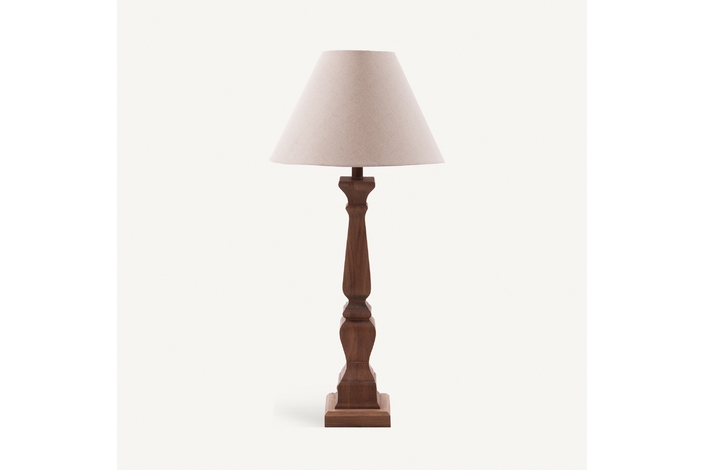 Lámpara de sobremesa, en color natural envejecido, de estilo provenzal. Fabricado en madera roble.