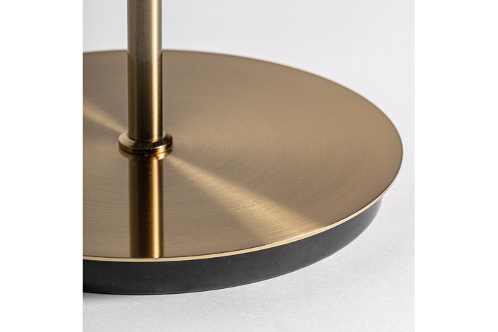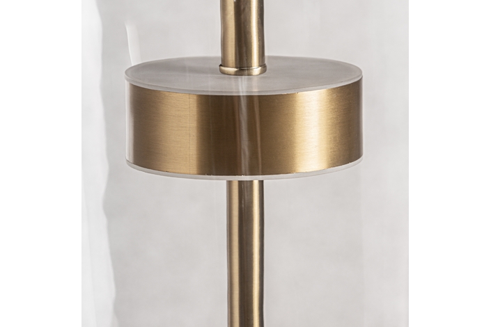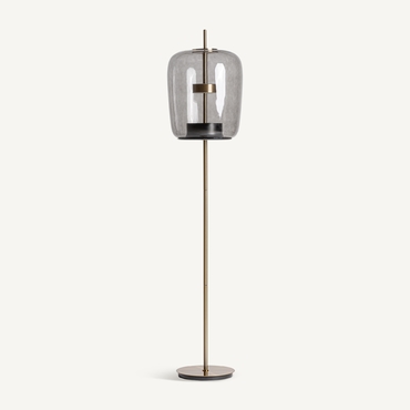 Lámpara de pie. Fabricado en cristal, en color negro/oro, combinado con acrílico, en color oro. Producto desmontable.