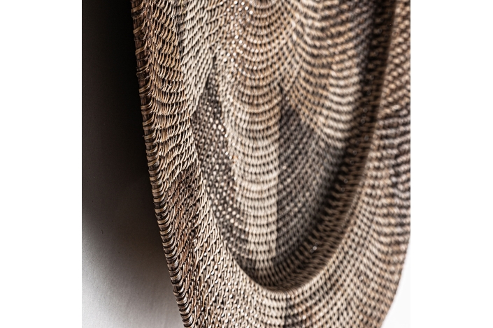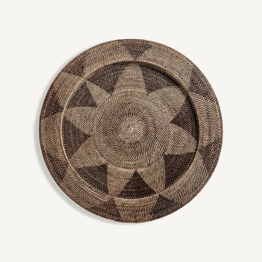 Plato decorativo, en color tonos en marrón, de estilo boho. Fabricado en ratán.