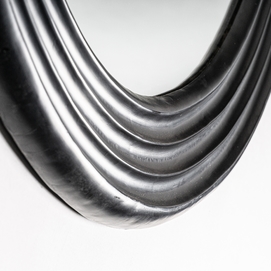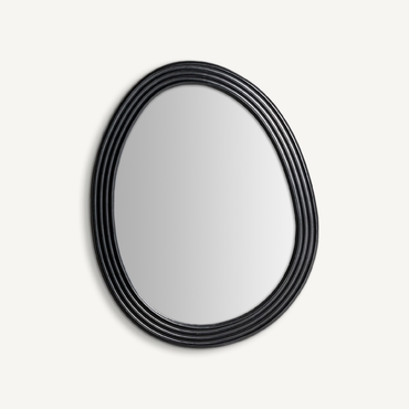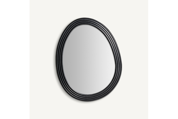 Espejo, en color negro, de estilo colonial. Fabricado en resina, combinado con hierro y espejo.