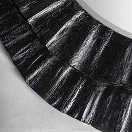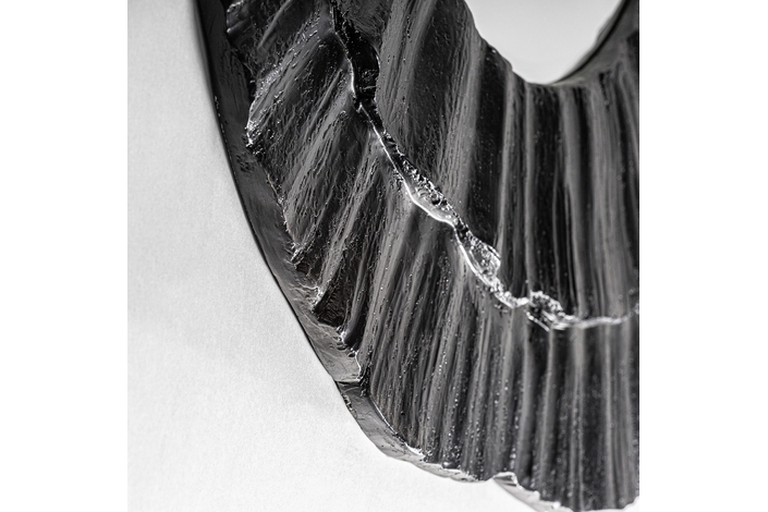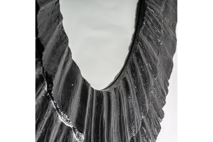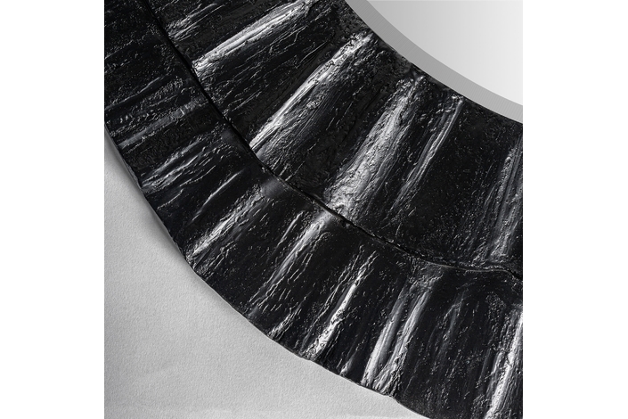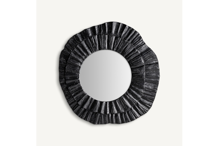 Espejo, en color negro, de estilo contemporáneo. Fabricado en resina, combinado con espejo y hierro.