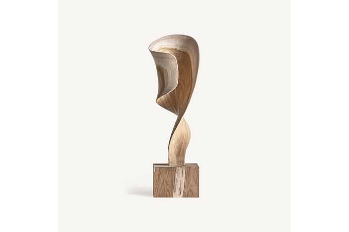 Figura decorativa, en color marrón claro, de estilo étnico. Fabricado en madera de teka.