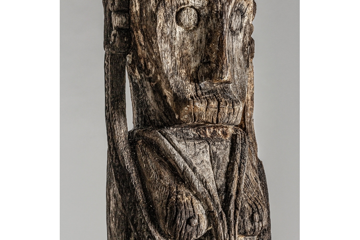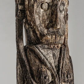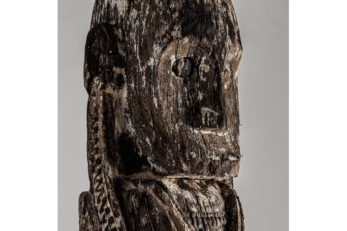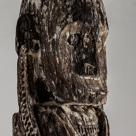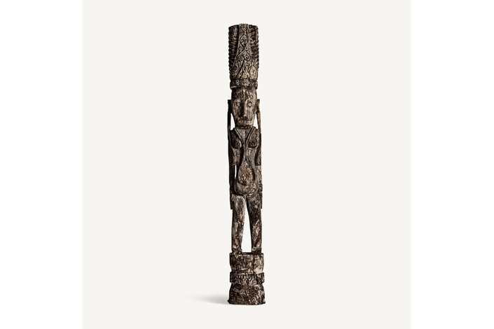 Escultura, en color marrón envejecido, de estilo étnico. Fabricado en madera tropical.