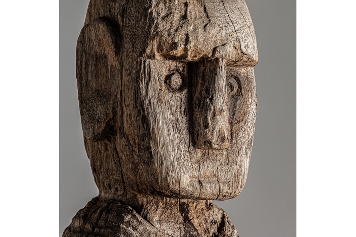 Escultura, en color marrón envejecido, de estilo étnico. Fabricado en madera tropical.