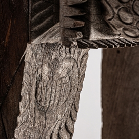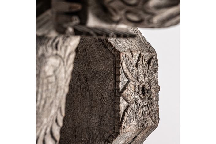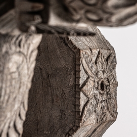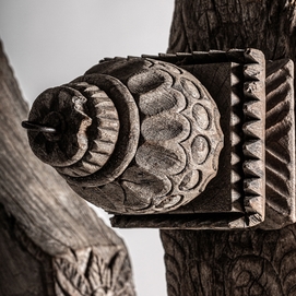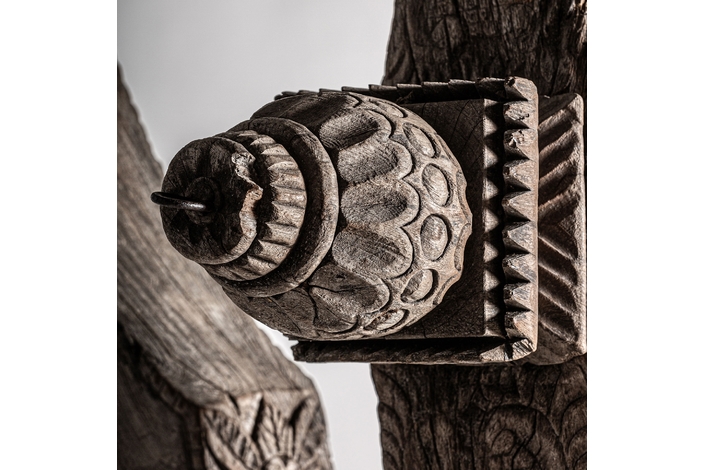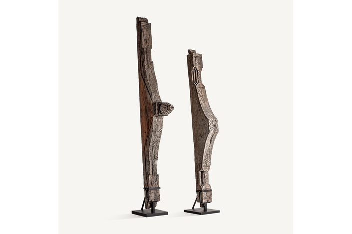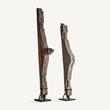 Escultura j/2, de estilo étnico. Fabricado en madera tropical, en color marrón envejecido, combinado con hierro, en color negro.
