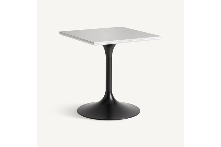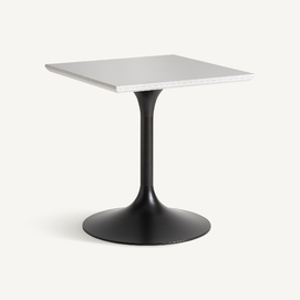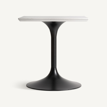 Mesa bar perrier, de estilo art deco. Fabricado en acero, en color negro, combinado con porcelánico, en color blanco. Producto desmontable.