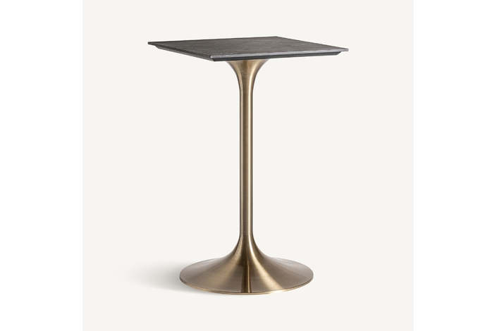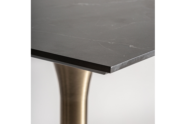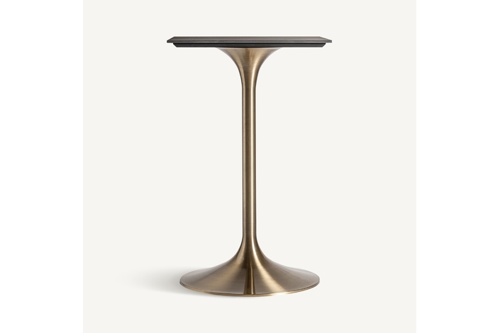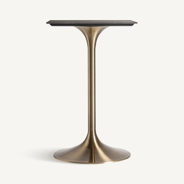 Mesa bar ullaland, de estilo art deco. Fabricado en acero, en color oro, combinado con porcelánico, en color negro. Producto desmontable.