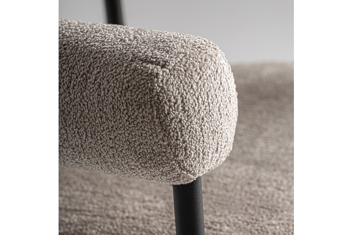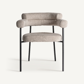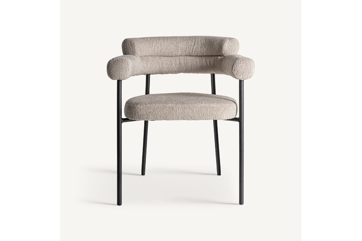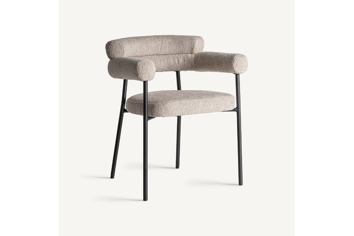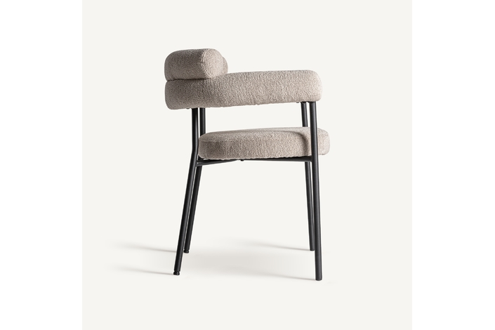Silla albula, de estilo contemporáneo. Fabricado en poliéster, en color gris, combinado con acero inoxidable, en color crema y espuma.